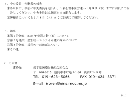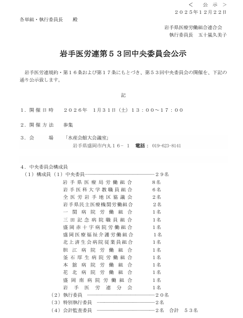 岩手医労連第53回中央委員会公示