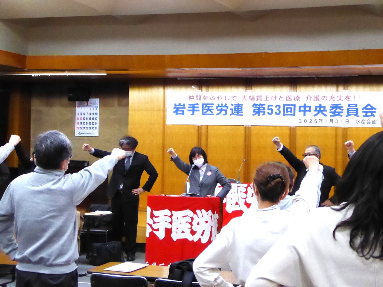 岩手医労連は1月31日(土)に岩手県水産会館で第53回中央委員会を開催し、2026年春闘運動方針、産別統一ストライキ権確立、会計規程の一部改正が賛成多数で可決されました。