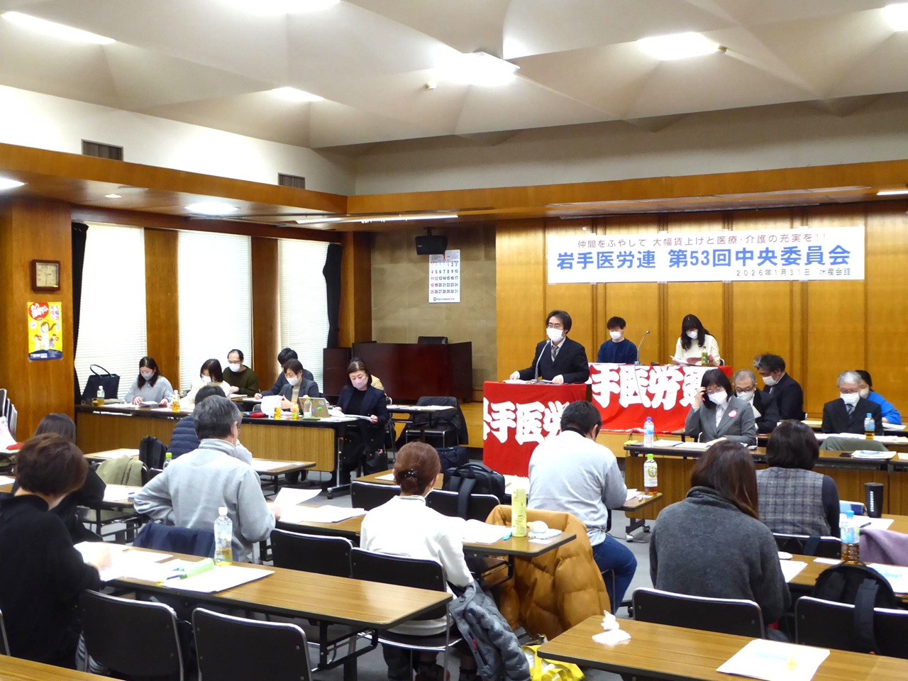 岩手医労連は1月31日(土)に岩手県水産会館で第53回中央委員会を開催し、2026年春闘運動方針、産別統一ストライキ権確立、会計規程の一部改正が賛成多数で可決されました。